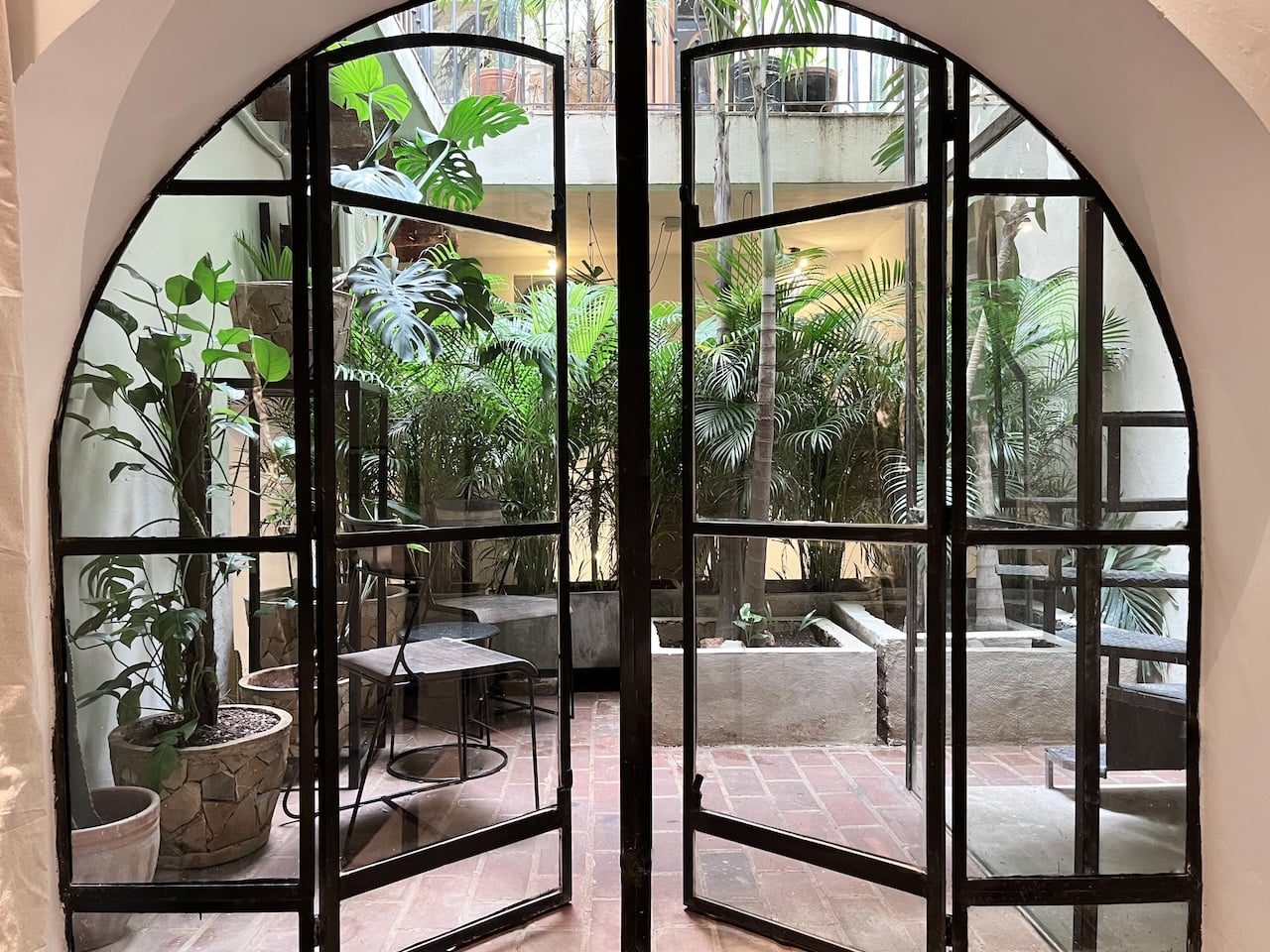 - Two XL atelier windows with iron & glass, of which one provides a green view on the hotel’s tropical garden patio.