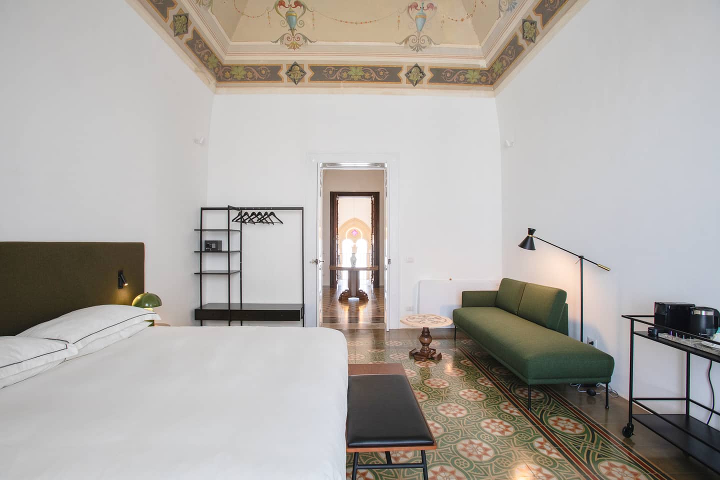 Experience serenity in the Oliveto, a room that pays homage to Puglia's iconic olive groves and its liquid gold.