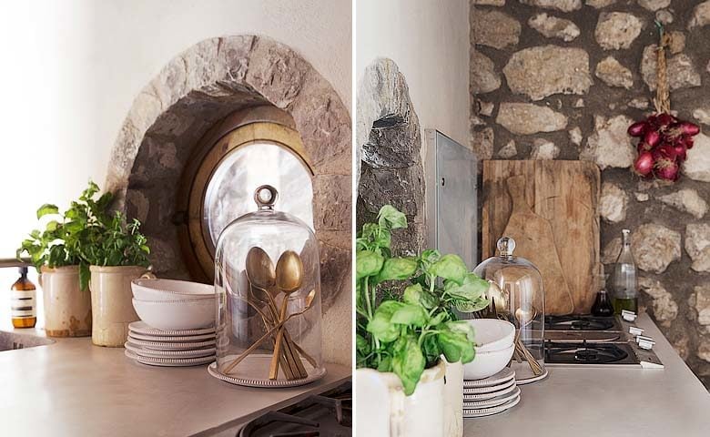 Built in the Middle Ages, the tower obviously had a completely different purpose compared to how we are using it today. It was a great challenge to refurbish, as there are very strict rules for such a protected historic site and our choices regarding the materials used were predetermined. The walls are natural local whitewash, which contrasts nicely with the rustic stonewall. Smooth local cotto stone was used on the floors to blend well with the overall structure. Actually, the biggest challenge during the tower’s renovation was the vaulted ceilings and arched walls.